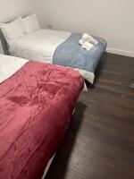 Two Comfortable double beds with crisp linens, plenty of pillows, bedside lighting and storage for your things – a relaxing spot to properly rest after a long day.