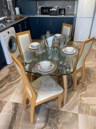 Amenities in the property are: Satellite TV, WIFI, Washing Machine, Dishwasher, Bed Linens and towels. The usage of WIFI connection, Gas and Electricity are all included in your booking prices. For stays more than 28 nights booked by booking agents, cleaning is carried out usually once a week (subject to contract), or in accordance with mutually agreed schedule of cleaning. For bookings over 14 nights made via all other avenues (i.e. not booking agents) we recommend that you book an interim clean at a subsidised rate directly with us)